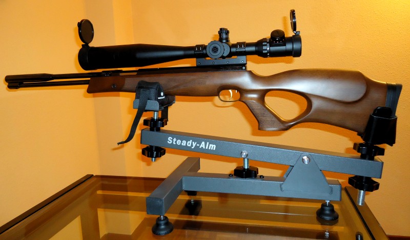 En la foto que aparece el visor montado sobre la carabina se aprecia el banco de apoyo con el que tiré durante el mes de julio. Si el lote se recogiese en mano, regalaría el banco VANGUARD de acero que se ve. No lo envío por su estructura irregular y por su peso. La carabina no entra en el lote. Se vendió hace un mes.