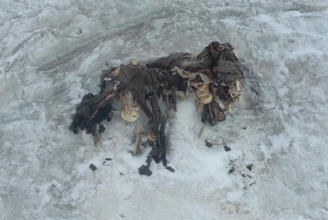 Si es así, entonces en aquella época el glaciar también había retrocedido y luego creció y cubrió a estos combatientes y ahora vuelve a retroceder y los devuelve ...