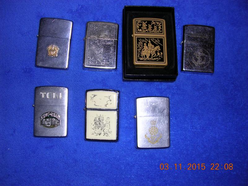 7 Zippos, algunos piezas según me dijeron algo raras.