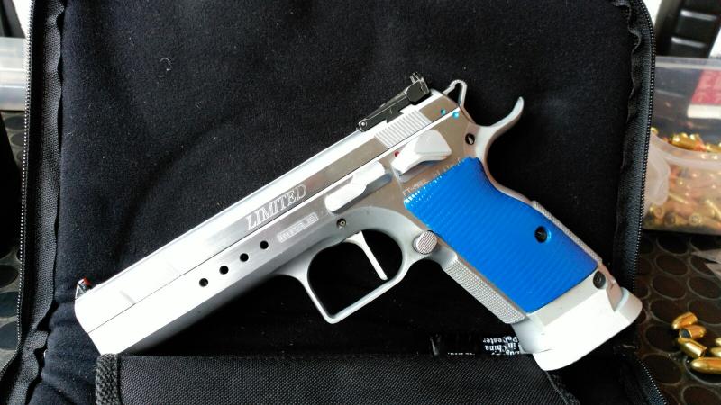 Pongo a la venta Tanfoglio Limited Custom. Calibre 9mm pb, guiada en F. Varios juegos de cachas, 4 cargadores de 17 cartuchos, punto de mira de fibra roja, punto de mira original, alza micrometrica, fannel, xtreme flat trigger ( disparador recto), disparador original, casette para funda extracción rápida ipsc. El arma se encuentra y se puede probar en Madrid. Precio 700€, portes a cargo del comprador.