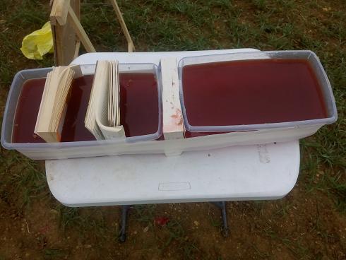 Al igual que en el caso anterior, al fundir los bloques de gelatina, se fueron recuperando esquirlas de plomo que se fueron quedando por el camino. En este caso más plomo que en el de la partition, lógico, por otra parte.