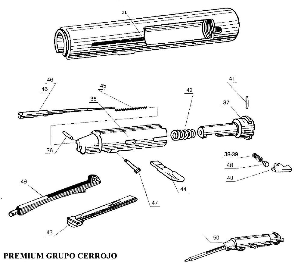 Si aún así te lo hace, como bien te lo he indicado en otro foro, sustituye la aguja y el muelle 45 que es el de la aguja, no el 42 que ese es el de la cabeza del cerrojo.