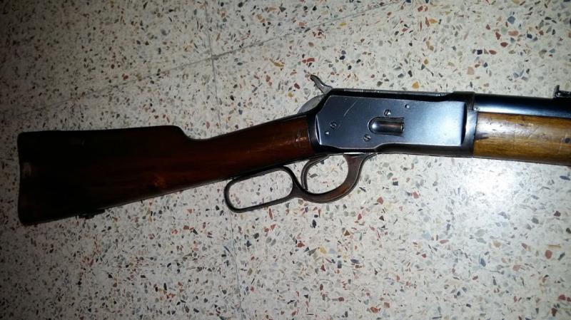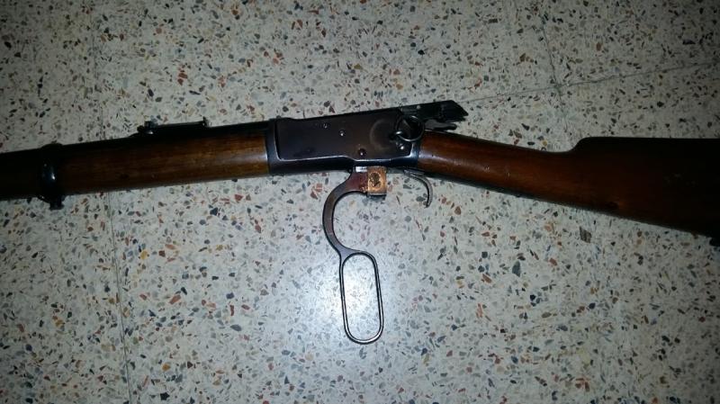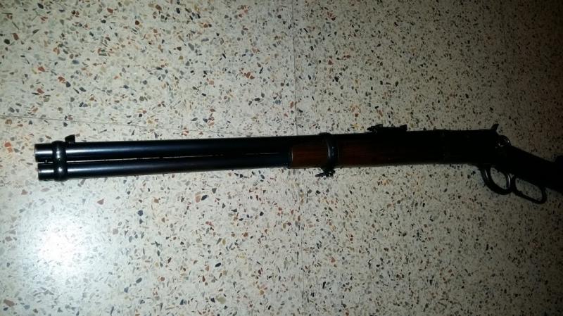 En mi humilde y modesta opinión no es un Winchester por las anillas de la correa que el original no las llevaba; el marcaje del calibre "44 largo" solo se hizo en España, el resto lo han marcado como 44/40 Win. El original no llevaba cajón de respeto en la cantonera, en éste no se aprecia y la tapa del almacén, debajo del cañón y por delante que tampoco se ve, en el original lleva una marca vertical, una hendidura o raya para usar destornillador y desmontarla, que el Tigre no tiene.