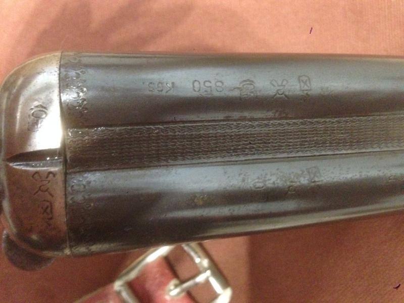 Tuve hace tiempo una escopeta marca Chimbo del 410, prácticamente igual a esta y que sería de los años cincuenta o sesenta, pero por algún motivo no tenía los cuños del año. Todos los demás sí, pero los que define la fecha de la prueba no.