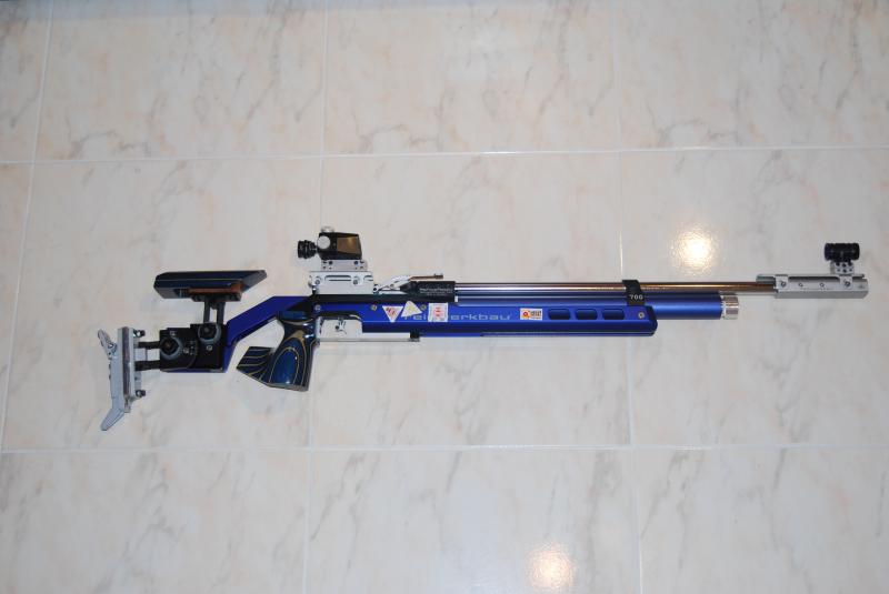Vendo carabina de aire comprimido Feinwerkbau P700 de competición. Calibre 4,5 mm. Incluye diopter con túnel M22 y anillas de fábrica, iris con filtros AHG,4500 balines seleccionados y contrapesos y accesorios adicionales. Calidad comprobada. Fecha de bombona: I/12. Precio: 1250 euros