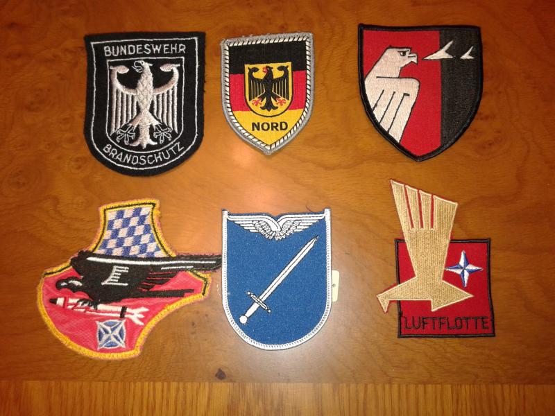 Vendo escudos en tela, todos ellos originales de distintas unidades del Ejercito alemán. La mayoría son del Ejercito del Aire pero también hay algunos de la Policía.