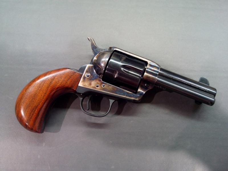 Es un Cattleman con cañon de 3'5 pulgadas de largo con culata Bird Head y en calibre 45 long Colt.