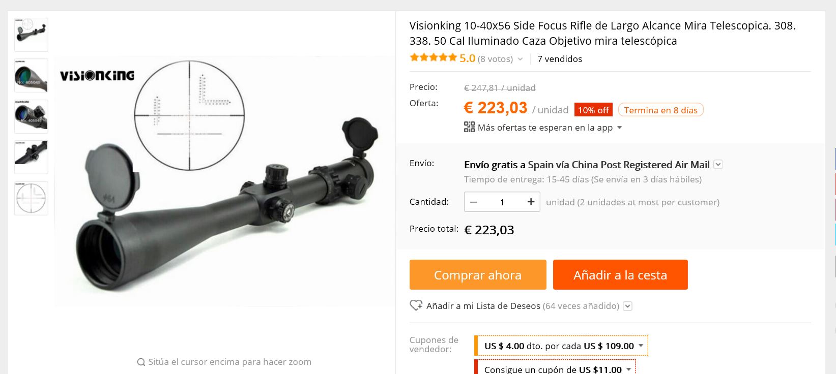 El precio ha sido con porte y todo 220 dólares. Ni el visor chino me salía tan barato.