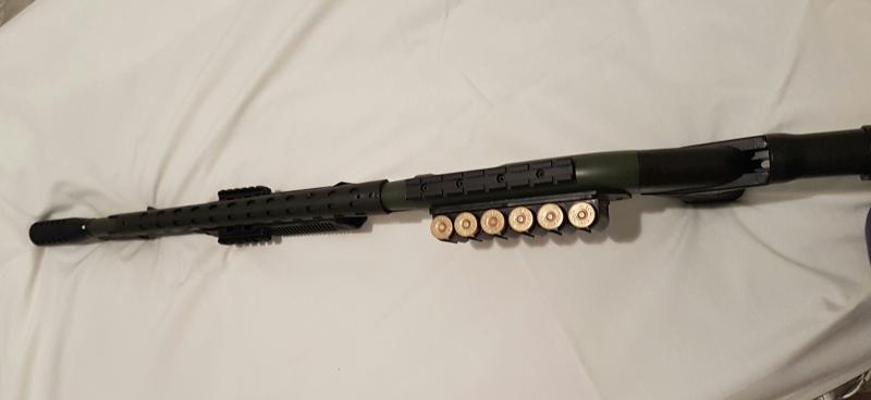 Hola compañeros, se vende esta fantastica Remington 870 tactica, a la cual le he puesto varias cosillas para que aun sea mas impresionante, como una bocacha, difusor de calor en el cañon, carril en la parte superior, porta cartuchos lateral, corredera tactica con carriles, y aparte se añade una culata plegable para intercambiar.