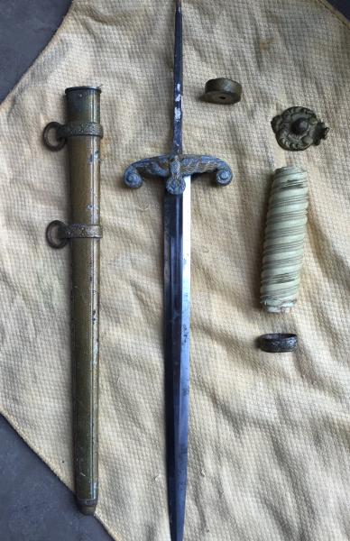 La ha tenido en el desván durante muchos muchos años, y al hacer limpieza salió esto, junto a otros efectos militares perrenecientes a su abuelo. Salieron uniformes, gorras, botas y hasta una cartilla alemana. De todo esto no se quiere deshacer, pero de la daga no le importa demasiado porque es de pocas armas.