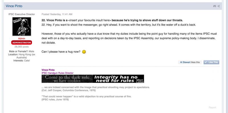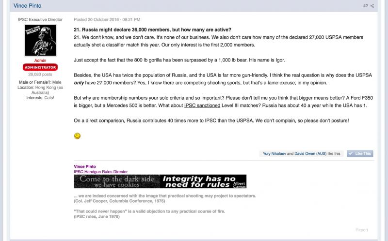 como la respuesta de Vince Pinto, no correría tanto en darle la razón al presidente de la USPSA. Hay algunas cosas en las que Vince Pinto tiene razón. Obviamente, no en todas.