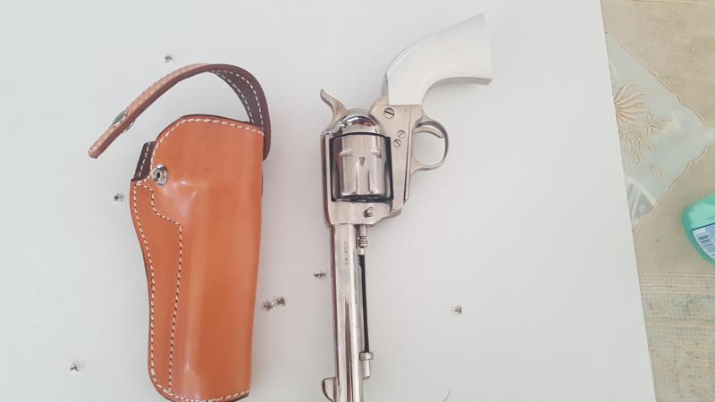 Compañero, con ánimo de clarificar un poco el tema, te pregunto por la marca del revolver. Imagino que quieres decir « tipo colt» cuando te refieres a él.
