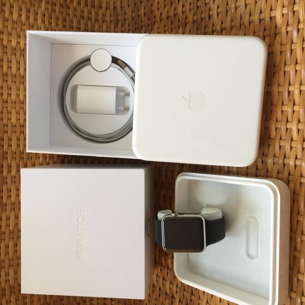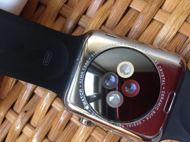 Carcasa de acero de 42mm con display retina con cristal de zafiro y pulsera negra de caucho.