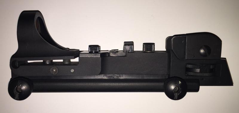 Junto al visor viene incluido una base picatinny con mira M4 incorporada (ideal para rifle tipo AR15), además de una base estándar para railes picatinny sin mira trasera, junto a elevador, para usar con cualquiera de las bases de manera que sea posible instalar el visor en posición "co-witness" o "1/3 lower co-witness".