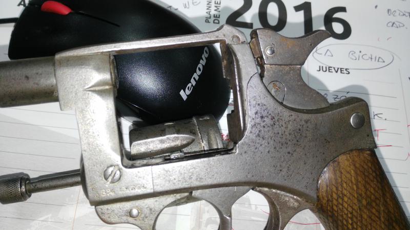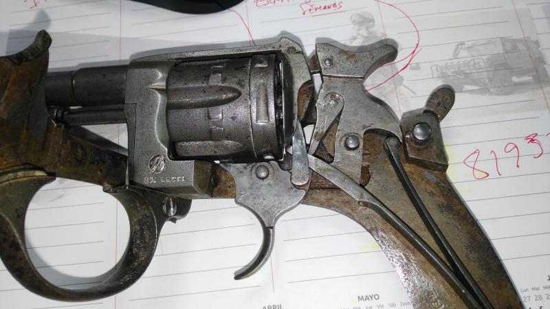 Por cierto, más datos. Soy cabo primero de la Armada y la compré en un anticuario en Montevideo. Como podréis observar, no tiene el número de serie debajo del tambor, como sería lo lógico, ni tampoco el del año de fabricación a la derecha, debajo de "Mod 1892", en el cañón. Coinciden muchas cosas, pero da la impresión de ser una copia del estupendo revolver hecha en otro país...