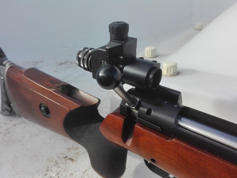 Dióptero, túnel, rabera, alargador para el cañón, hand stop. Todo ello está instalado tal como se vé en la foto.