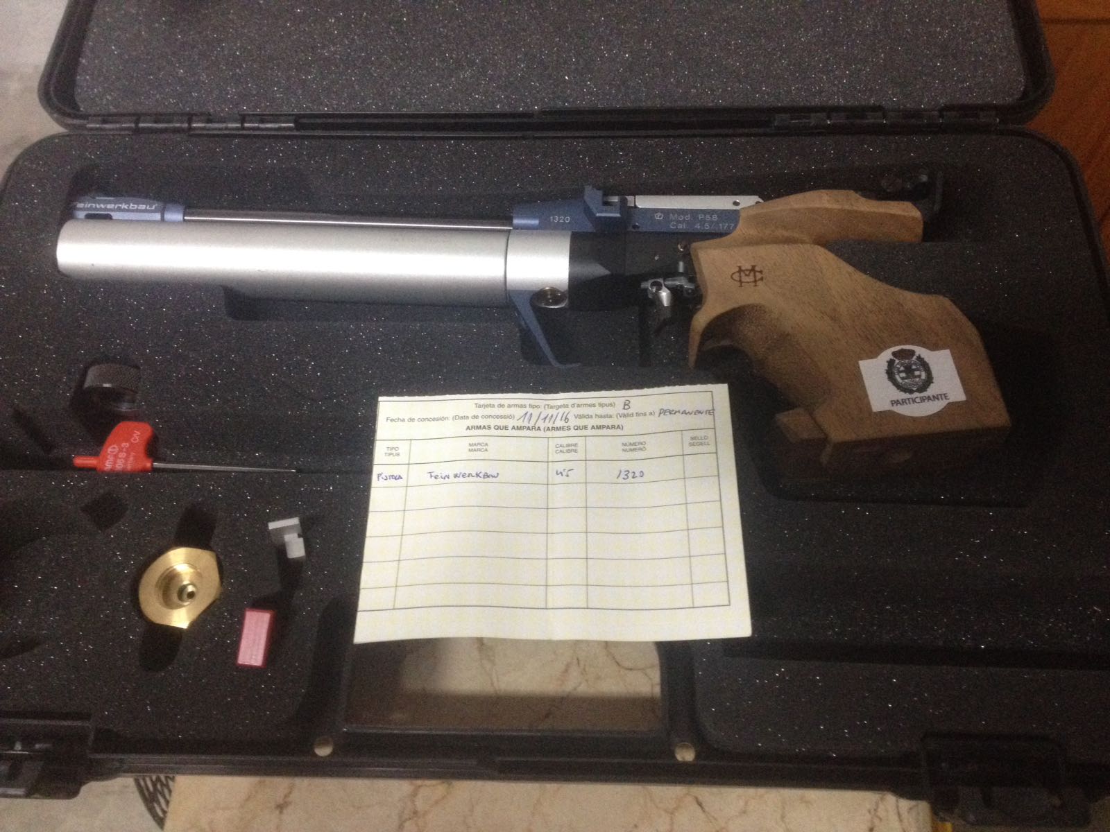 Un amigo del club me ha pedido le ponga en venta la Feinwerkbau P58 de su mujer.