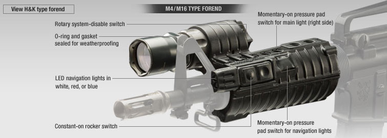 Es una linterna Sure Fire, de Xenon, integrada en un handguard medida carbine para M4.