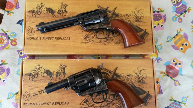 Revolver Uberti Stallion 4-3/4 del 22Lr y revolver Uberti Cattleman réplica del Colt SAA 1873 en calibre 45 3 pulgadas. Estan total mente nuevos. Vendo los dos por 900€ algo negociables.