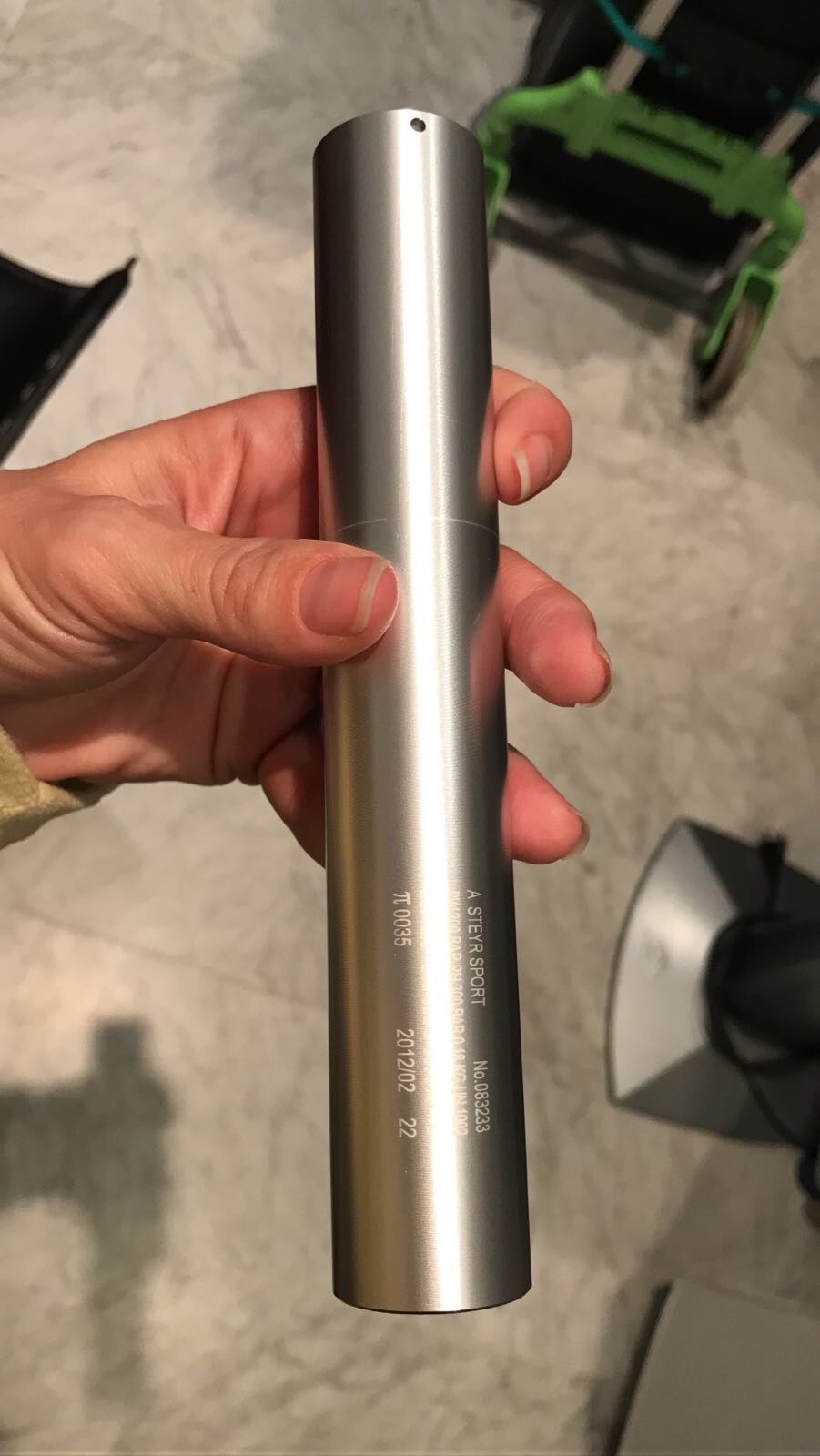 Vendo botella de aire comprimido para la pistolas Steyr. Es VÁLIDA hasta el 2022¡¡¡¡. Es nueva, NUNCA fue timbrada. La vendo solo por una razón, soy un manioso, y al colocarle el Scatt le hice un marca circular, se ve en las fotos. En fin pido por ella 120 euros + portes si los hubiese. Atiendo WhatsApp 678627999.