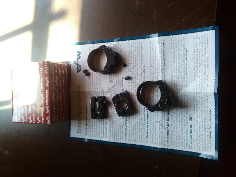 Monturas completas Apel para rifles sauer de anillas de 30, podrían ser validas para otros rifles,22 milímetros entra agujeros,altura del taco trasero 7 mm,las tenia en sauer 202 con visor de campana de 50, están de reestreno, 275 € gracias y saludos al foro.