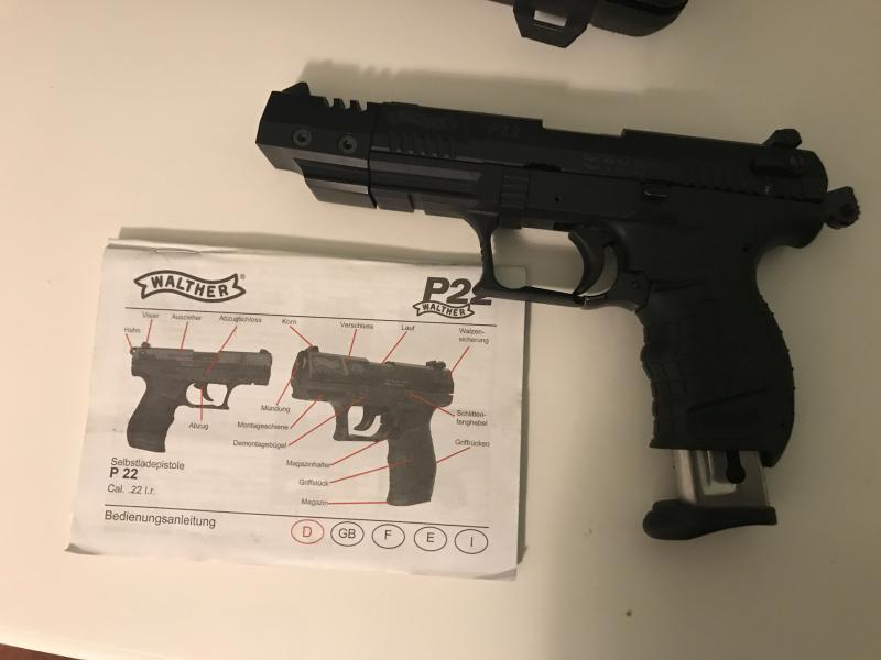 Vendo pistola walther P22 cañón largo . Poco uso ideal tiro deportivo. Precio 135 e.Zona de Lerida tel 607274750