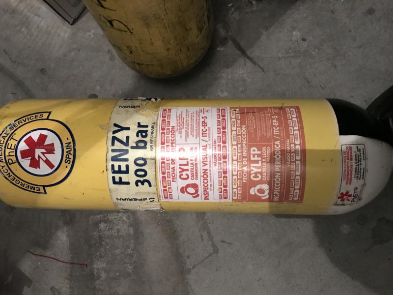 A mayores tengo para vender también dos botellas para la carga de aire comprimido aptas para presión de 300 bares de presión, con el timbrado y la revisión al día, la próxima revisión visual es para febrero de 2018 y el retimbrado para 2019