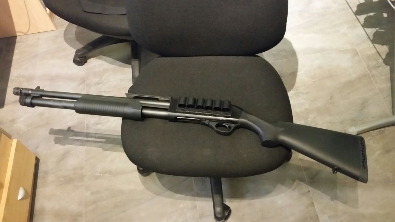 Vendo mi escopeta Stinger Tactical 1206 RXT,  con accesorios, porta cartuchos de 6 en la caja de mecanismos, 02