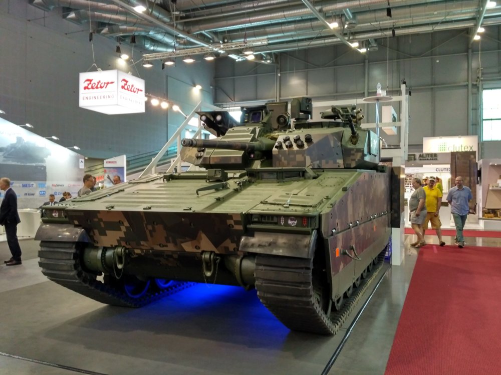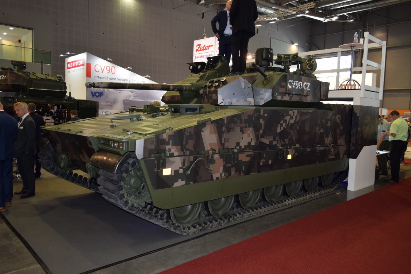 Realmente eran dos, con diferente torre y ligeras diferencias. Se presenta en Brno ya que la República Checa pretende substituir sus BMP2 el 2020-25 (los checos lo llaman BVP-2), y BAE les ofrece el denominado CV90 CZ, uno con torre tripulada y el otro con torre de control remoto (se llama CV 90 CZr).