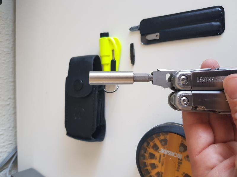 Yo la multi la tengo complementada con un extensor modificado y un estuche portapuntas, que quiero mirar de cambiar por un portapuntas más pequeño y llevarlo en el estuche de la navaja.