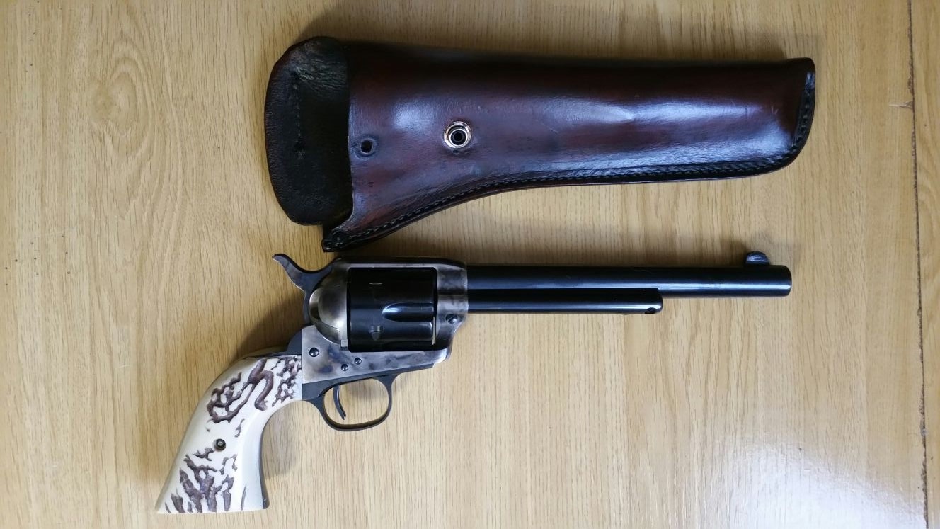 vendo revolver uberti c.l. 45 l.c. de 7,5 pulgades perfecto estado bien cuidado con 2 cachas y funda de trasporte.