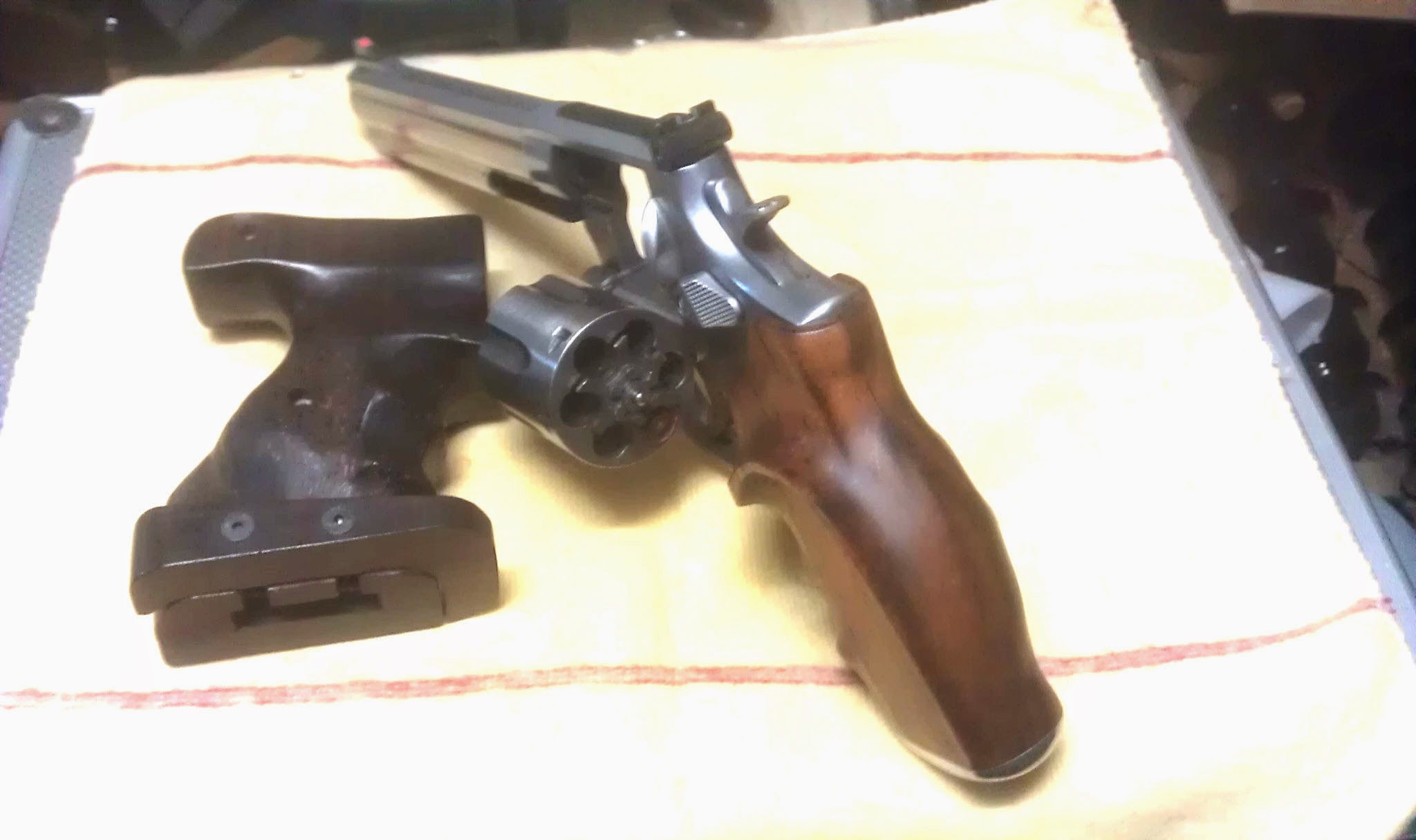 Vendo el revólver referenciado por no usar. En Fuego Central siempre he competido y entrenado con pistola del calibre 32. Tiene tres cachas, la original de goma negra y dos de madera una de ellas anatómica.
