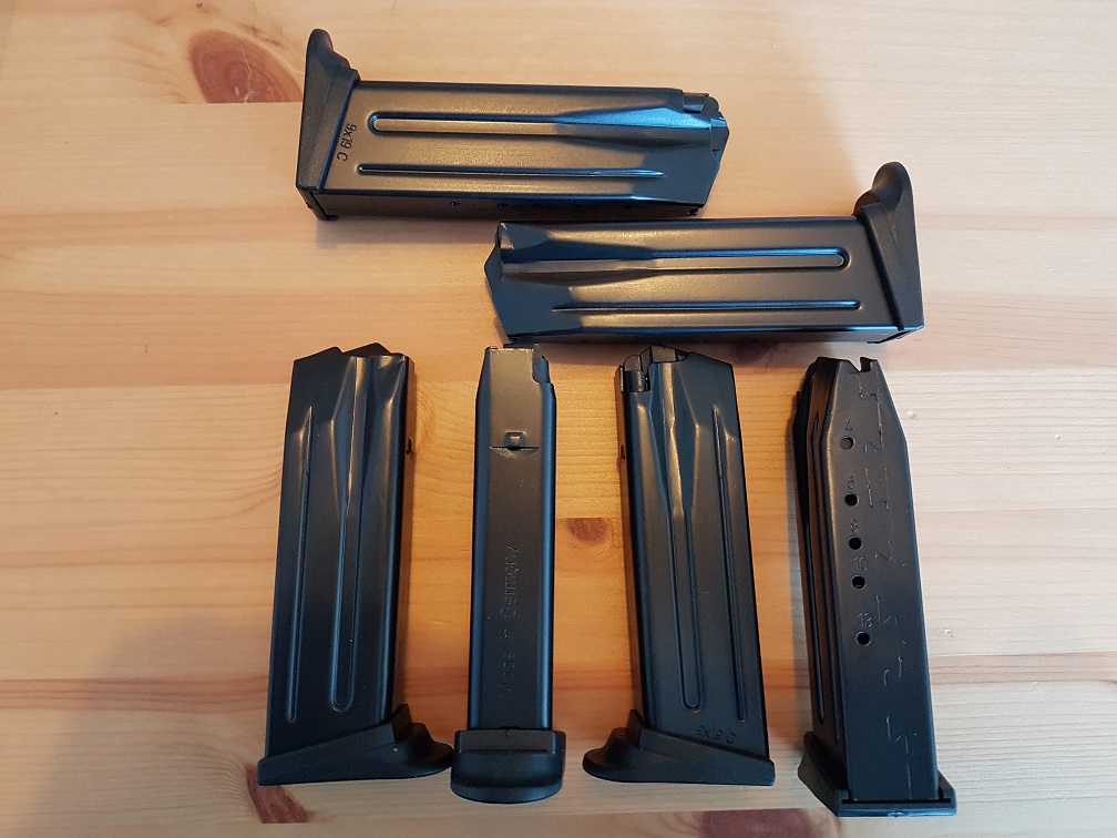 Me sobran unos cargadores de H&K USP Comp. de 9mm, nuevos sin estrenar, originales. 13 cartuchos, con la tapa con rabera de goma para apoyar el dedo.