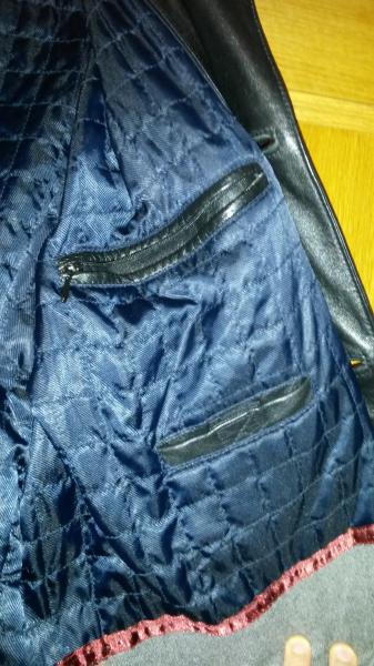 Chaquetón de tres cuartos de cuero color negro. Forrado y con dos bolsillos dentro.