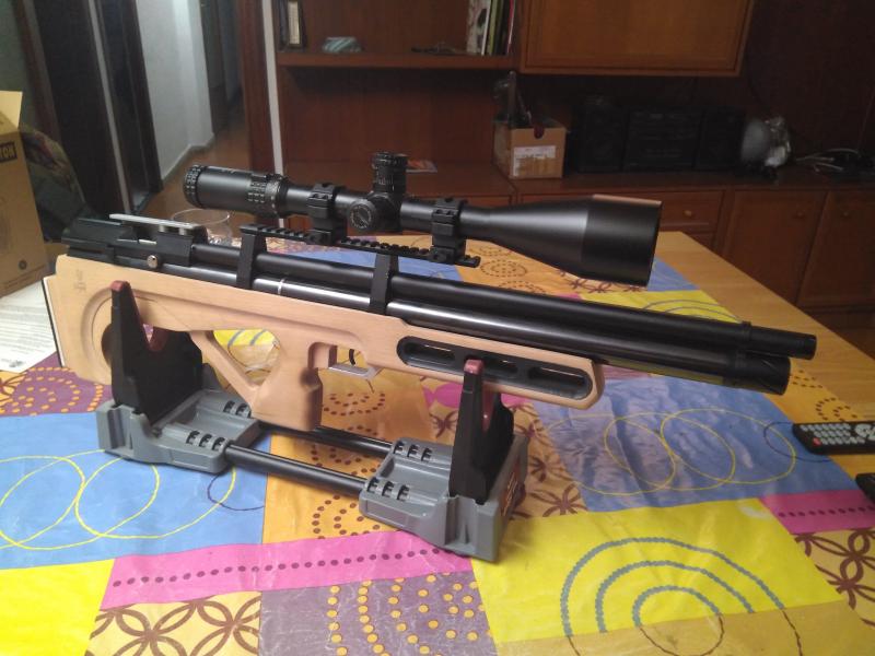 Opcionalmente puedo ofrecer tambien un kit de bulpup fabricado por rapid, un kit bastante bueno de serie al cual se le ha metido trabajo extra encima para ponerle una carrillera, un rail UIT en el guardamanos, un guardamontes y un buen pulido a la madera para que luzca mucho mas bonito y modificando puntos a la madera para que sea mas ergonomico.