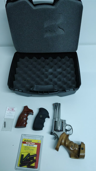 El muelle del gatillo está cambiado por uno afinado y mucho más ligero que el de fábrica, por lo que es mucho más suave a la hora de realizar el disparo, sobre todo en competición se nota mucho (se entrega también el de fábrica). Se entregaría todo con caja para su transporte (la de la imagen), y se incluiría un set de 8 salvapercutores a estrenar (38spl) para entrenamiento en seco o para guardar el revolver sin que sufra la aguja percutora y una baqueta para la limpieza del arma.