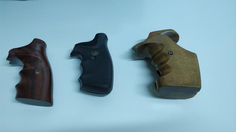 Cuenta con 3 cachas; Una de goma (Pachmayr), otra de madera y una tercera cacha anatómica regulable para mayor precisión.