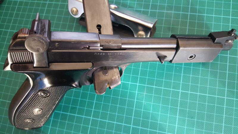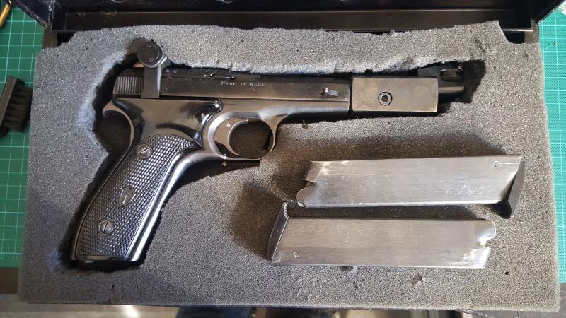 Arma en perfecto estado con dos cargadores, recambios, caja original, tres juegos de cachas original, 01