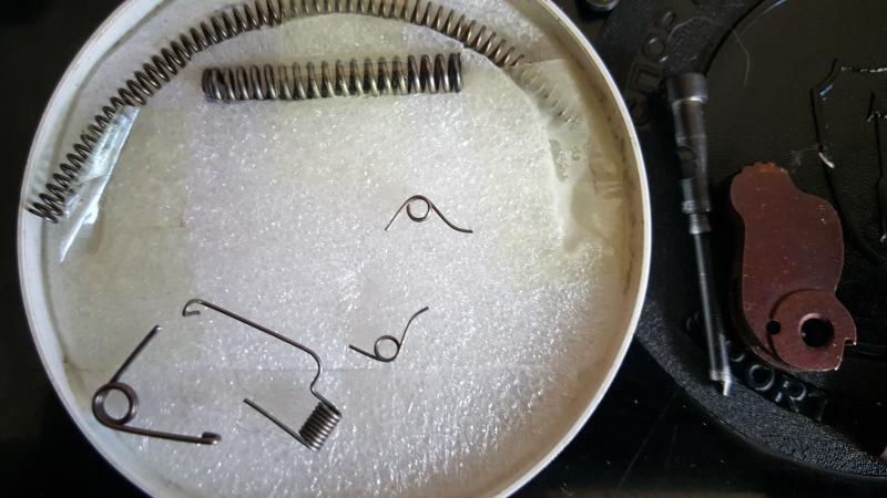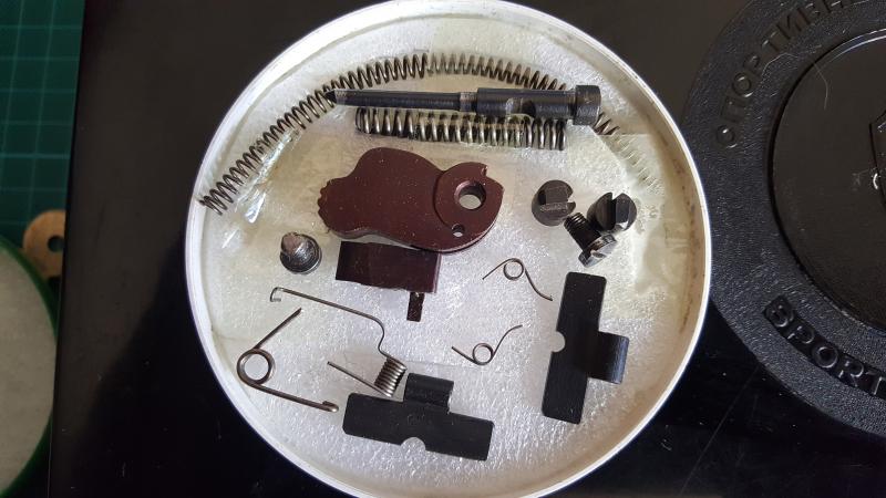Los recambios son kit de muelles, kit de resortes, dos puntos de mira, dos alzas, aguja percutora, martillo y cuña.