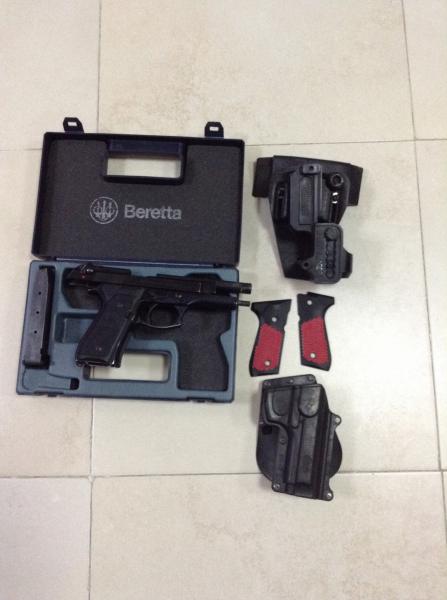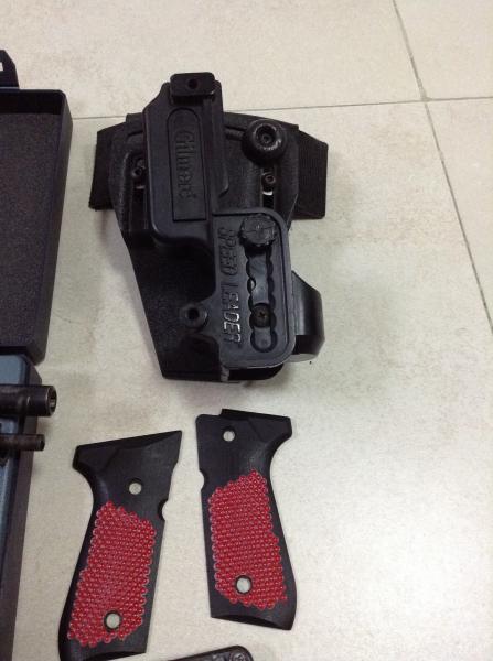 Calibre 9 pb, con maletin,dos cargadores, cachas rojas,funda fobus, funda ipsc