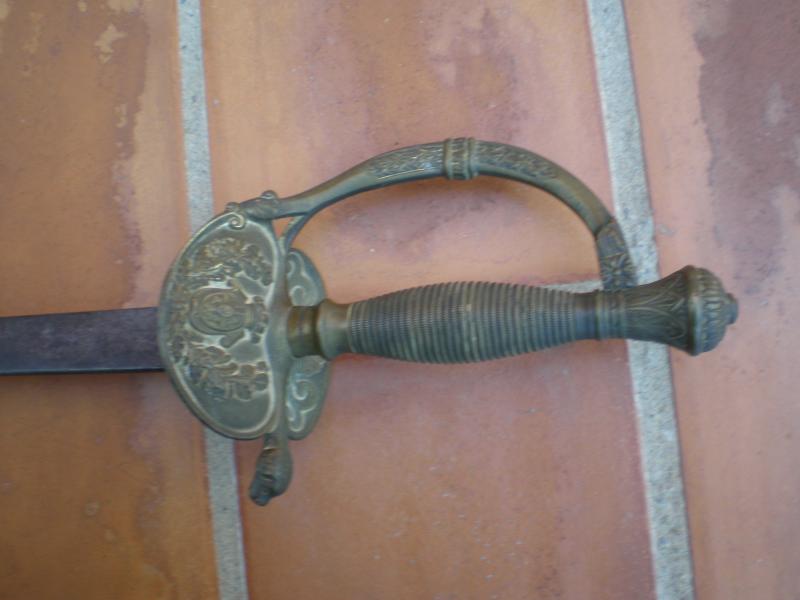 Pequeña corrección a lo dicho hasta ahora, es una espada de ceñir para oficial de infantería, pero el año del modelo es 1867. Aquí puedes ver el aspecto de una en mejor estado de conservación, incluyendo su vaina en cuero con juegos de latón: