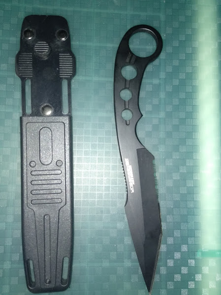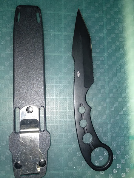 Vendo este cuchillo marca United Cutlery Undercover Combat Fighter color negro. Aus-6 Stainless. La funda es de plástico duro muy cómoda, con clip