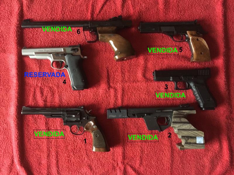 Por cese de actividad pongo a la venta las armas cortas que poseo. Como es natural también pondré a la venta el armero homologado de clase III. Están guiadas todas en F. A aquellos interesados en dies, pistones o prensa homologada nueva en breve pondré fotos e información.