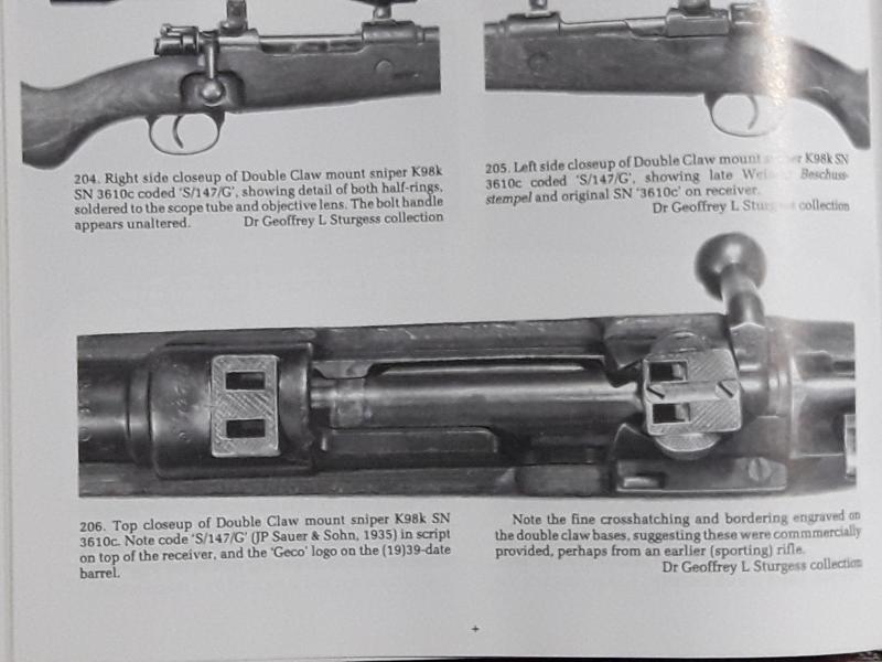 Rifle máuser k98 243 de 1938 en muy buen estado y con todas las piezas originales y con el mismo número de serie, en la culata tiene marcada una “L” lo cual debió de pertenecer a la luftwaffe, se le incorporó un visor ajack 10/50 marcado con el número de serie y parte del águila en una montura de doble garra, la cual aparece en el libro “sniper variations of the German k98k rifle” de Richard Law. Esta guiada con licencia "D"