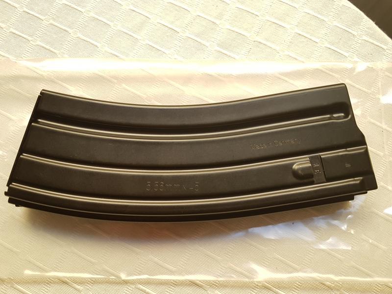 Vendo cargador original de H&K 416, fabricado en acero, muy robusto, no tiene nada que ver con los de aluminio ni con los de plástico.
