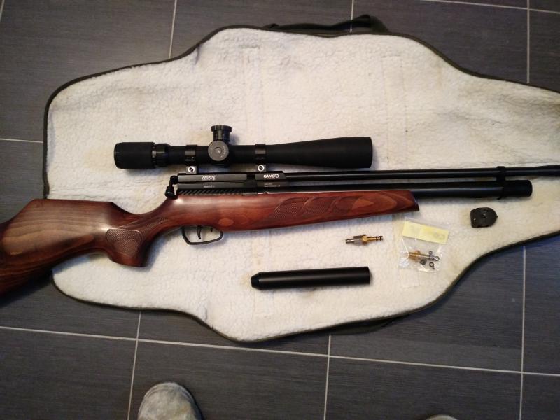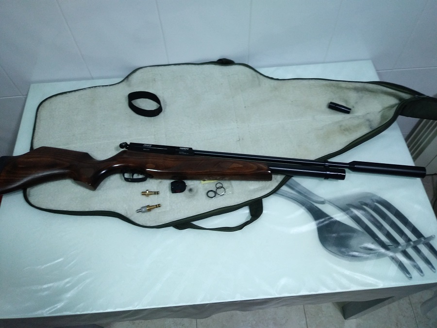 Es del calibre 5,5 y tiene dos cargadores , un moderador weihrauch , dos pin de carga , una bolsita con juntas toricas que venian con la carabina , una funda de transporte roolls , y como tengo monturas de varios tipos con las monturas que me pidais. El visor no esta incluido que me lo quedo para la siguiente adquisicion. Ni que decir tiene que la culata no tiene ni un rasguño y el equipo como un año y medio.