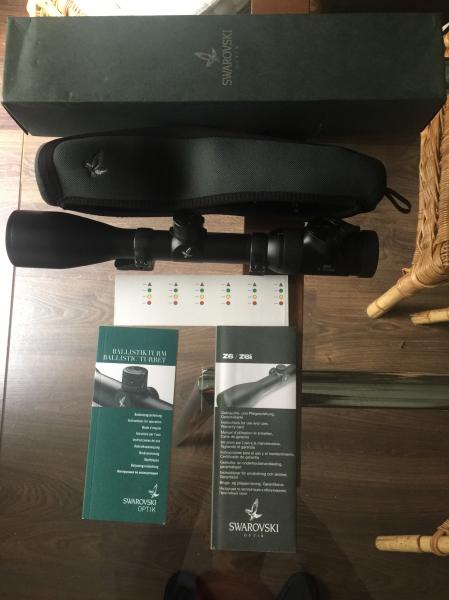 Visor Swarovski Z6i con torreta balística 2-12x50 con caja, manuales, accesorios y funda de neopreno Swarovski 120