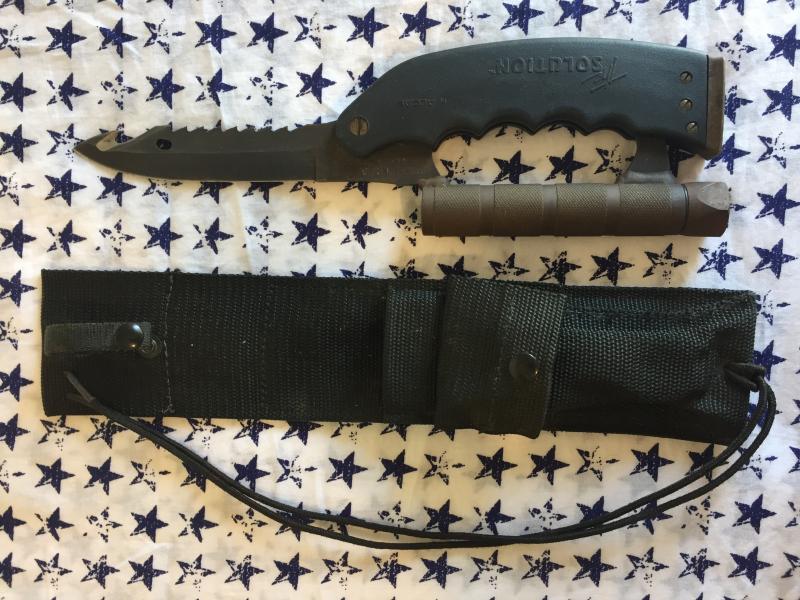 Dejo para el final el que se ve mas castigado el Case Bowie, miro las fotos y me parece que solo el suciedad, pero no estoy seguro, dale un buen fregado y a ver como queda, del resultado de la limpieza dependerá si le haces algo mas o no.