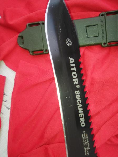 Salido del cajón de los milagros, vendo este aitor bucanero, diremos las faltas que tiene, lo demás ya sabeis lo que es un aitor bucanero, primero e tenido que limpiarlo estaba lleno de grasa, le falta la brújula y creo que llevaba cuerda alrededor de la funda pero esto no lo se. No se a usado como veréis el filo esta en perfecto estado, si hay algo es debido al mal guardado.