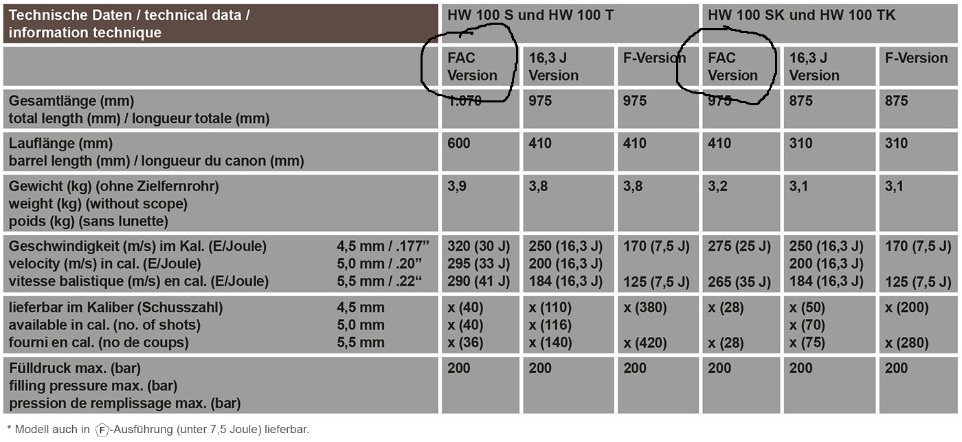 -Que la tabla del fabricante indica que toda carabina superior a los 16,3J es FAC.